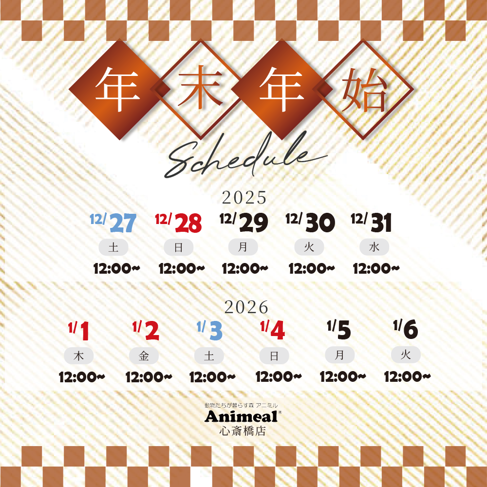 アニミル心斎橋店は、「猛暑に負けるな!2025'」キャンペーンとしまして、【~8月31日まで 11:00からオープン】いたします。